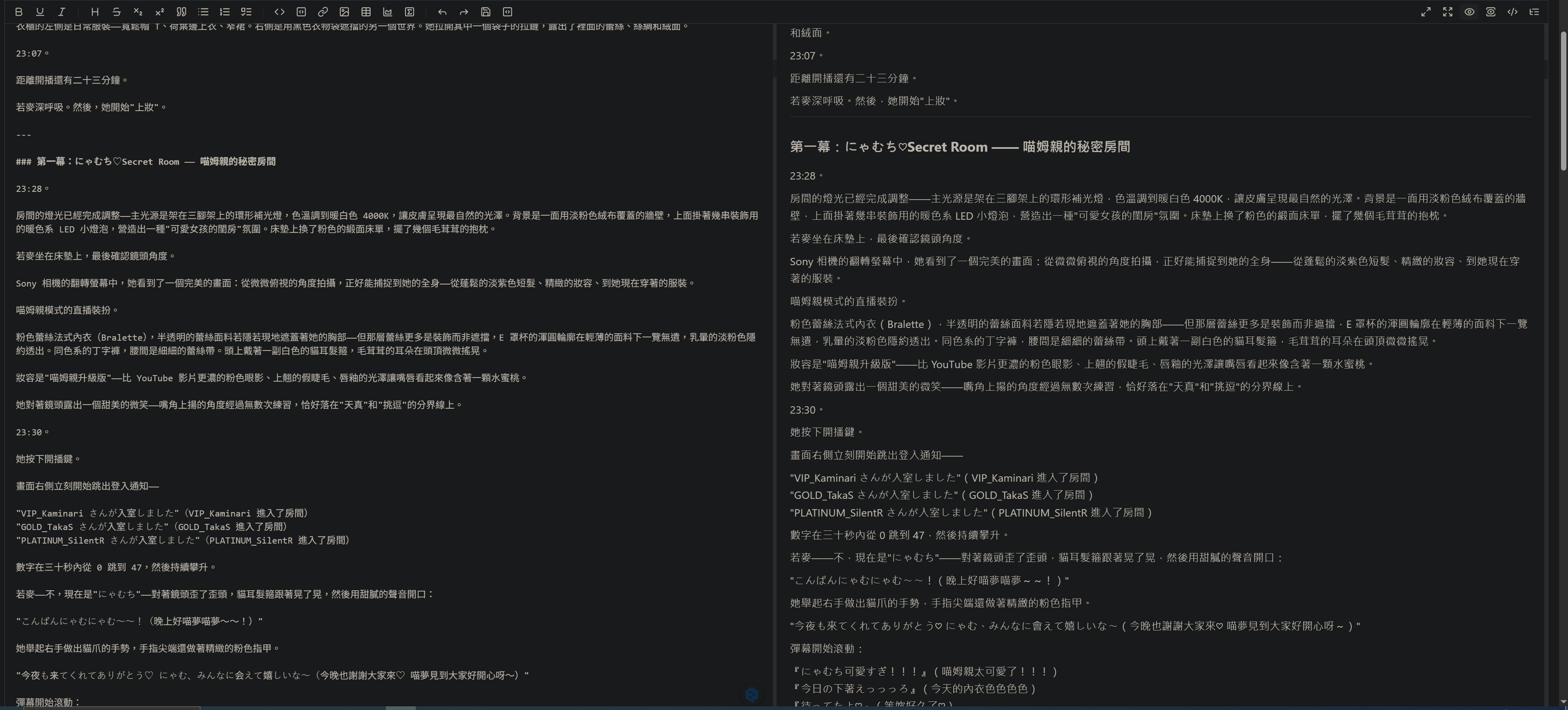 因為產出格式是用markdown,所以最佳閱讀方式是全部複製後貼到酒館
