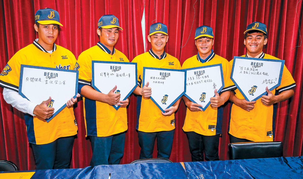 少年兄弟加盟 內野塞車啦中信兄弟隊今年簽新人速度居4隊之冠,季中選秀14人,已與其中13人談妥合約。昨天舉行第2波新人加盟記者會,領隊楊培宏替潘萣翔(原名潘志芳)等5名新秀戴上兄弟球帽,他說:「現在內野有些位置都塞車了,做夢都笑得很甜美。」林哲瑄 下周一報到至於義大犀牛隊選秀狀元林哲瑄加盟也出現新進度,昨天完成體檢,領隊謝秉育表示,若體檢結果沒問題,下周一(3日)將正式報到,隨一軍練球,球隊將於下周六(8日)為他舉行加盟記者會。兄弟今年選秀前7輪,除了已加盟的蔣智賢、11月17日才退伍的彭識穎,潘萣翔、張凱倫、蘇緯達、潘韋辰、林明杰昨天都來到現場。潘萣翔穿著2號球衣,他說,2013年因為右肩關節唇受傷,動了關節鏡手術後,整年球季報銷,期許自己加盟兄弟後,能健康打完整個球季。他這陣子都跟著國訓隊練球,國訓隊的公文昨天已經寄達球隊,預計近期就能報到。前10輪最年輕才18歲、壽山高中畢業的潘韋辰,特地穿著壽山高中橘色制服參加記者會,他笑說,教練江柏青要他在職棒「投得比我久」。當初兄弟球探王金勇來看壽山比賽,親口問他「想不想加入職棒?」他與家人討論後,希望減輕家裡負擔,「爸爸當粗工,希望他不用這麼辛苦。」他給自己1年時間在二軍磨練。楊培宏透露,目前僅剩劉軒荅的合約尚未達成共識,球團持開放態度,會繼續與他談約,但若最後選擇就讀大學或旅外,球團也給予尊重。http://udn.com/news/story/7001/1092393反觀.......--年僅17歲球速就高達151公里,於夏季甲子園決賽以無安打比賽寫下了春夏連霸的偉業人稱 「平成怪物」--※ 發信站: 批踢踢實業坊(ptt.cc), 來自: 114.43.74.100※ 文章網址: https://www.ptt.cc/bbs/Baseball/M.1438392472.A.767.html