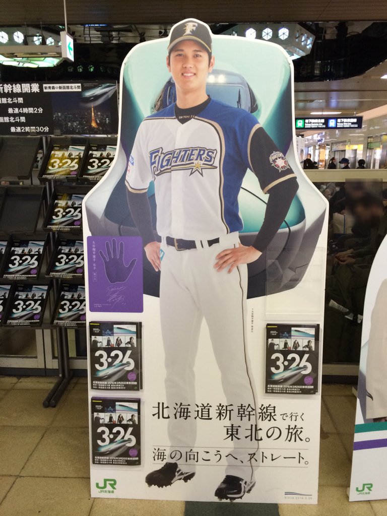 在車站及旅遊景點等公共空間,隨處可看到大谷翔平 陽岱鋼 中田翔的立牌