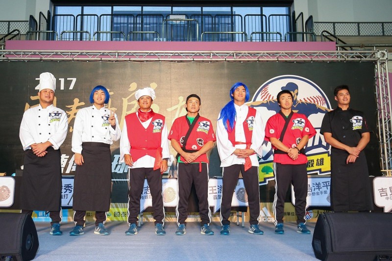 之後的「殷雄食堂」廚藝大賽,陳偉殷(右)變身大廚和球密親切互動。(主辦單位提供