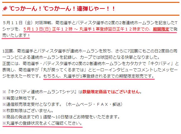 廣島球團今天立刻推出了期間限定T恤