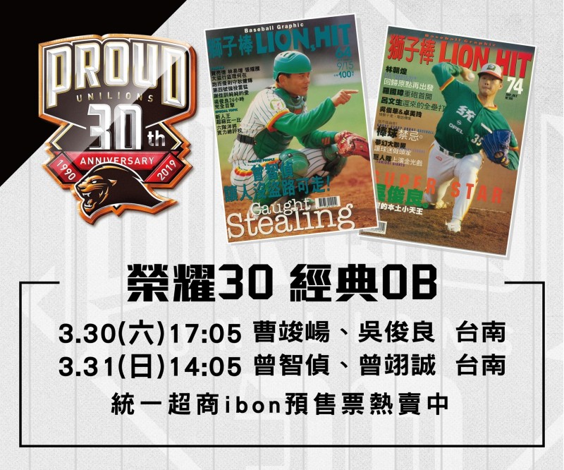 連續兩天週六、週末假期賽事,統一獅榮耀30 經典OB再現,也持續每場準備「職棒30