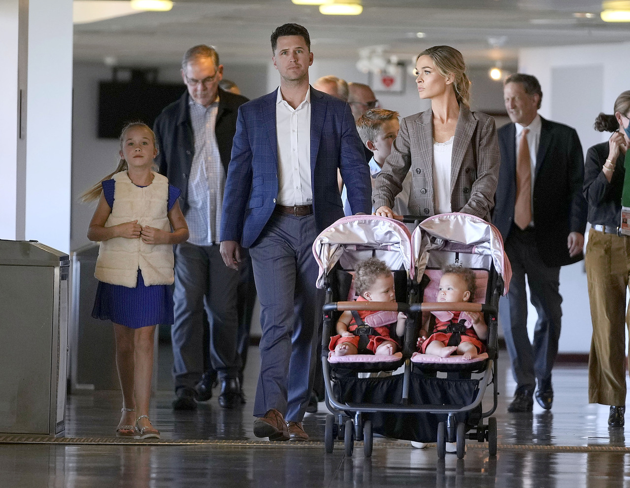 波西與妻子克莉絲汀(Kristen)、巨人隊主席強森(Greg Johnson)、總裁貝爾(Larry B