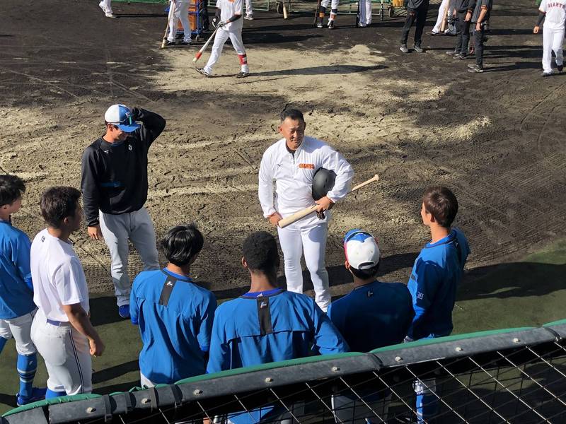 火腿今天作客巨人展開練習賽,中田翔賽前就出現在三壘側的火腿休息室前,日媒報導包
