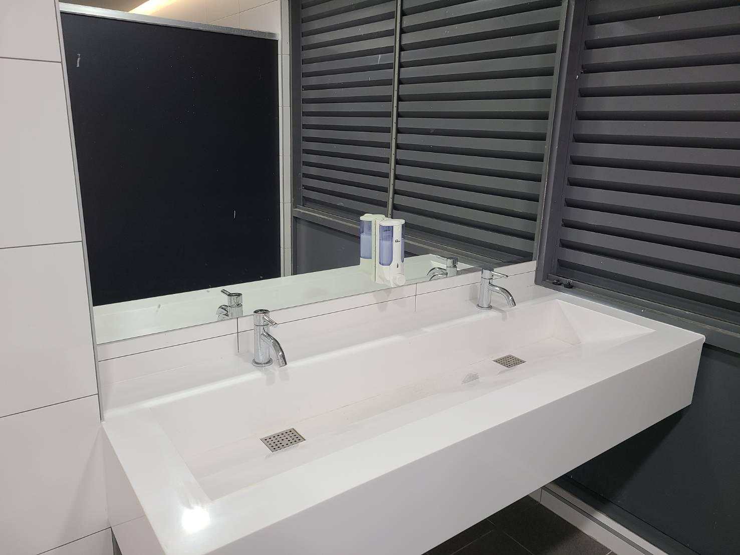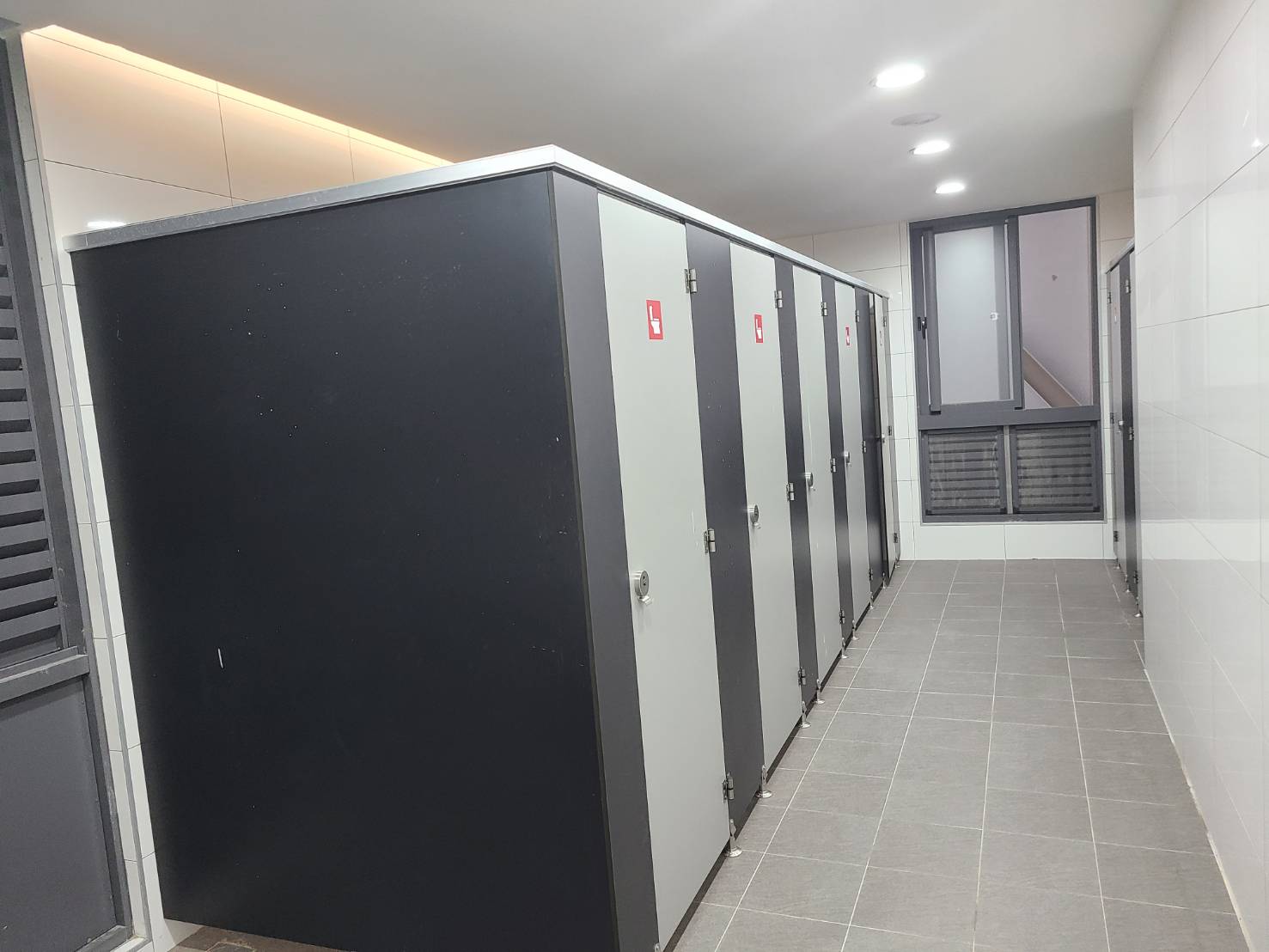 男廁部分為了通風設計,二樓及三樓都有8個小便斗、3間廁所,四樓有6個小便斗、4間廁