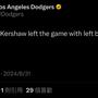 [情報] Clayton Kershaw 傷退