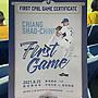 今日江少慶 第一場在中華職棒的比賽. 吃完三局用球數比較多之後就換隊友接手了. 3 IP. 68 NP. 5 H(1 HR). 2/2 K/BB. 4 ER. ERA 12.00 WHIP 2.33. 第一局走進球場的時候剛好看到陳大哥大棒一揮. 少主這時候不知道在想什麼. 進場證明:https:/