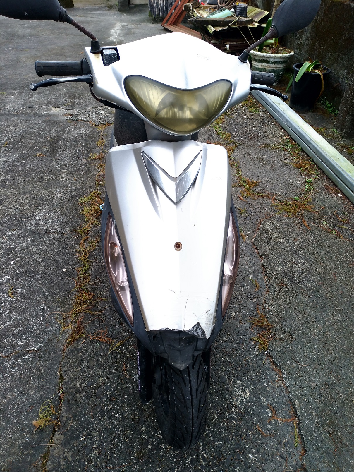 右車殼小裂、前面板破裂、踩發故障、前碟煞故障