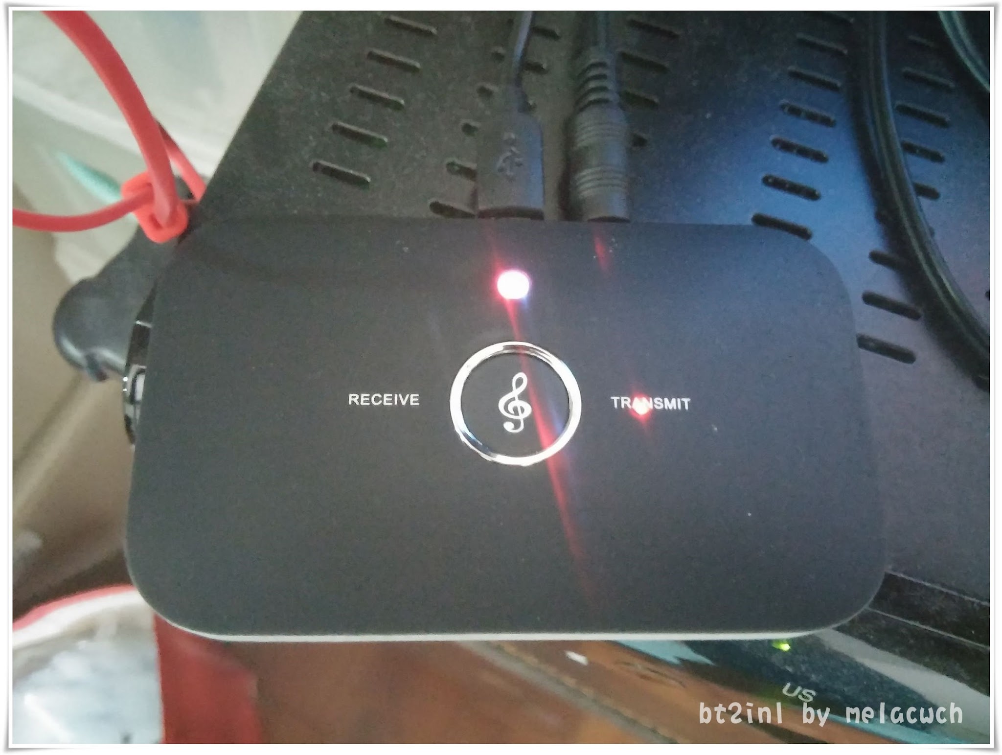 的喇叭變成藍牙喇叭,紅色孔是transmit模式,也就是接在電視等設備,將聲音傳到其他