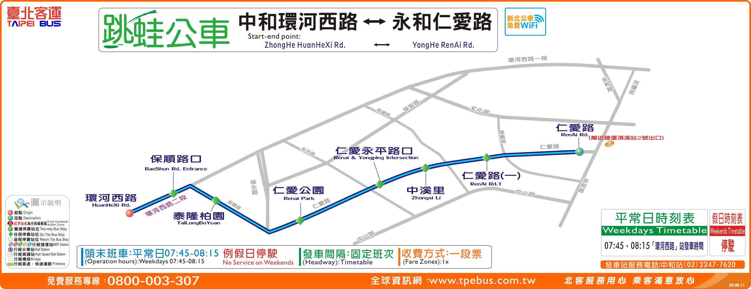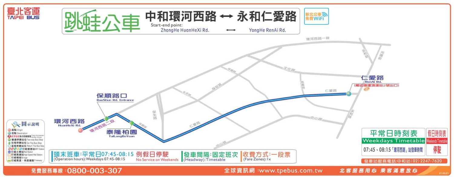 營運路線:跳蛙公車 中和環河西路—永和仁愛路