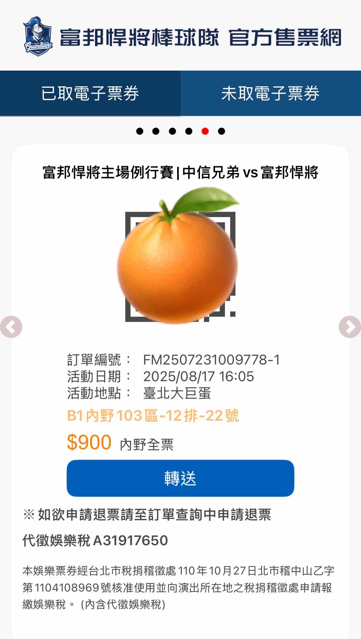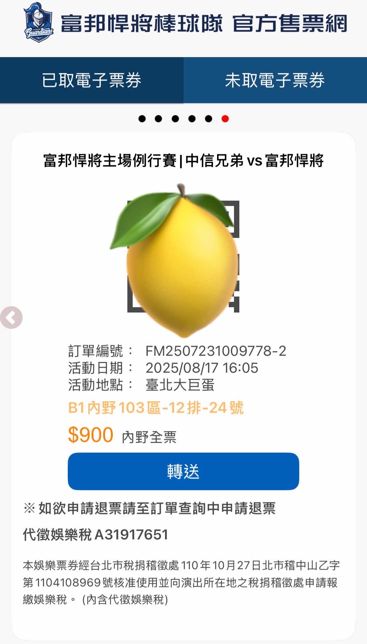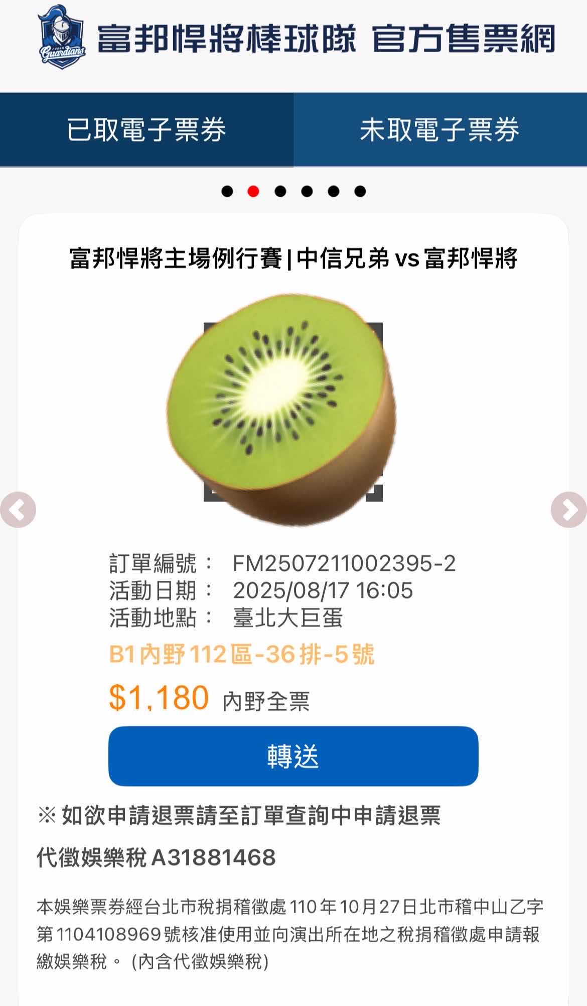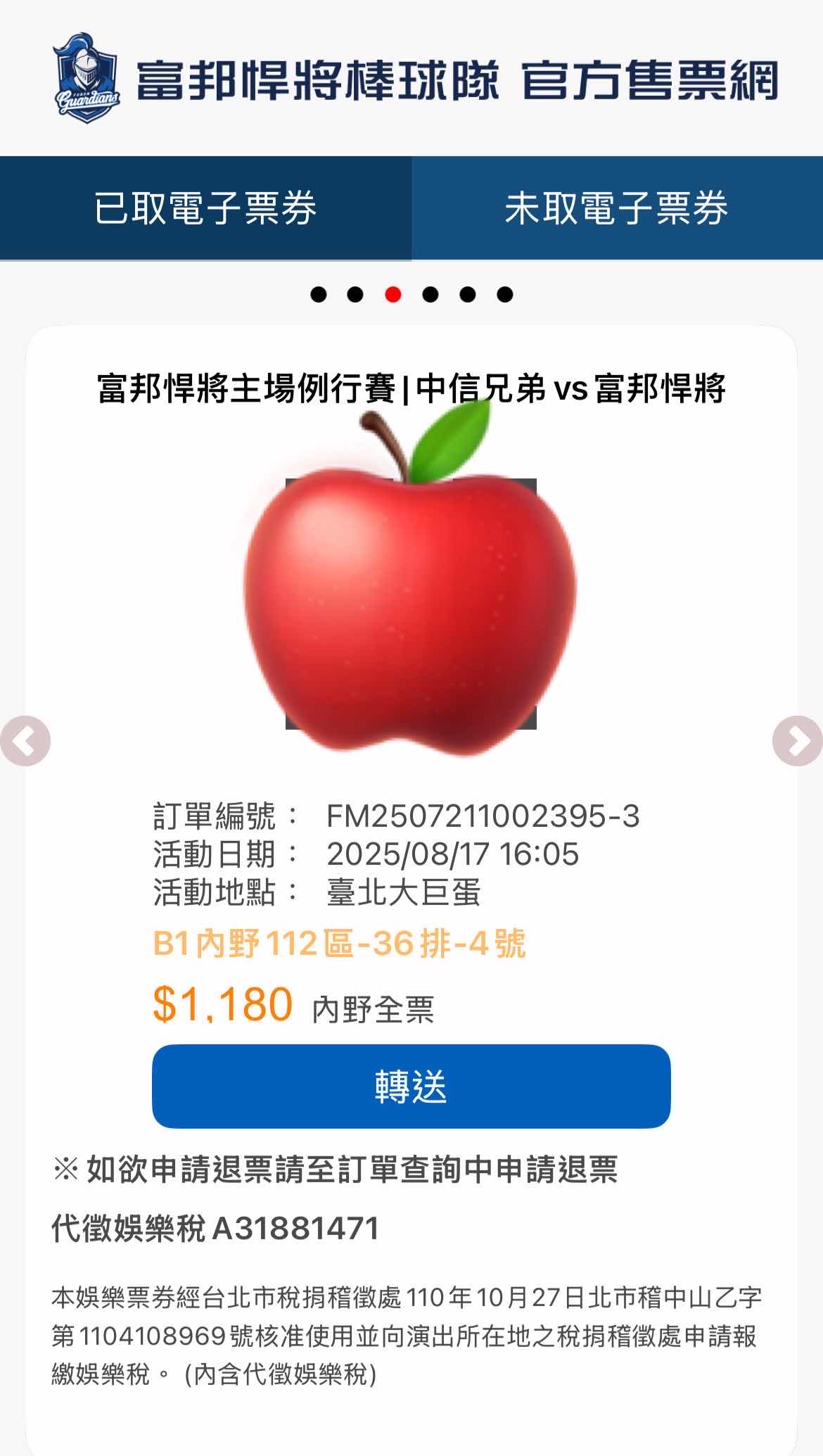 [賣票] 8/17(日)大巨蛋112 中信VS富邦