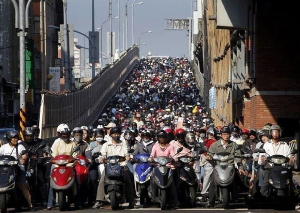 先說機車好了,在美日在飆車以外的場合很少看得到這種車陣阿