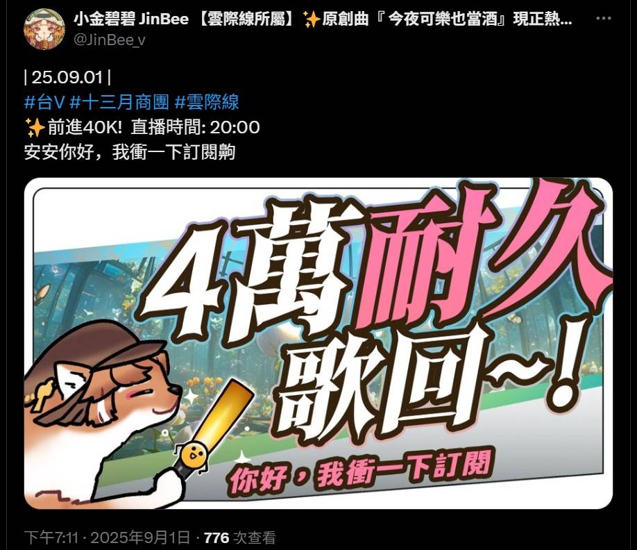 前進40K! 直播時間: 20:00