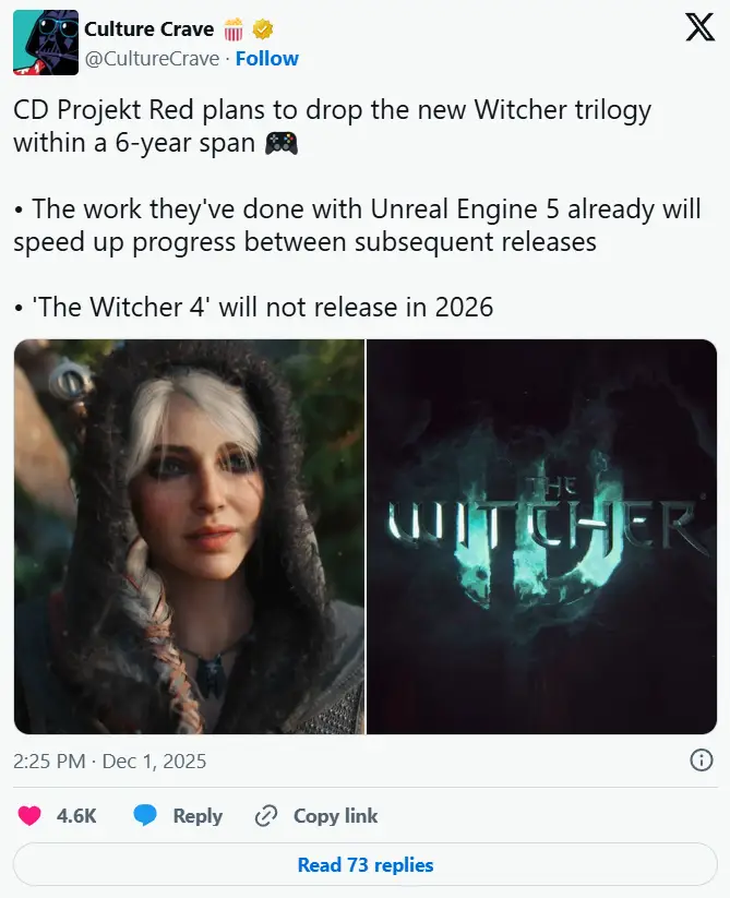 自從開發商CD Projekt Red宣布《巫師4》將會缺席本次2025TGA後,讓不少玩家感到惋惜