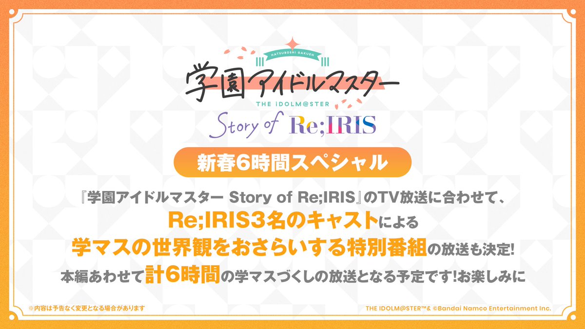 [情報] 學園偶像大師Story of Re;IRIS 6小時特番