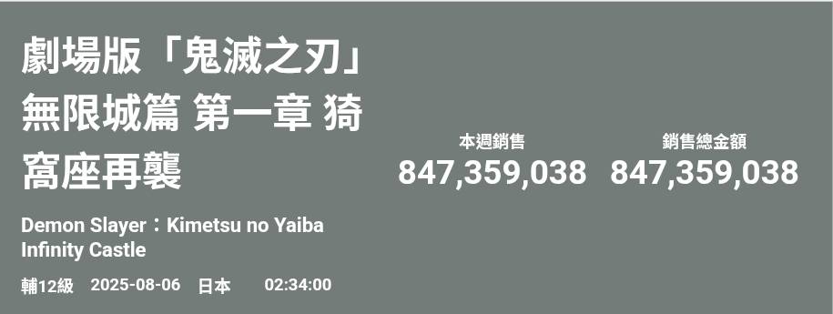 [閒聊] 鬼滅之刃 無限城 情報票房彙整閒聊樓