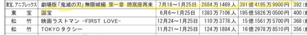 1. 日本票房 400億