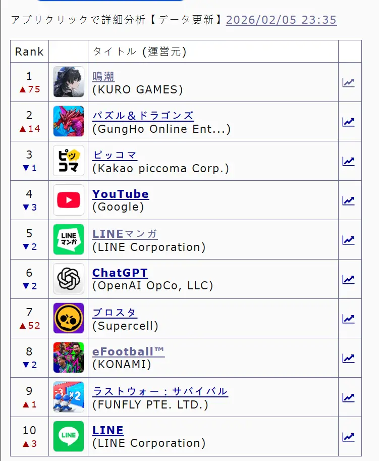 日服剛剛更新後登頂了 竟然把PAD擠下去了 不可思議 看來好劇情真的能讓後勁變強耶 我遊戲群好幾位朋友都是跑完劇情再多抽 --