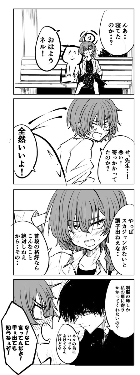 寧:老、老師......!抱歉!我剛才靠在你肩膀上了嗎?