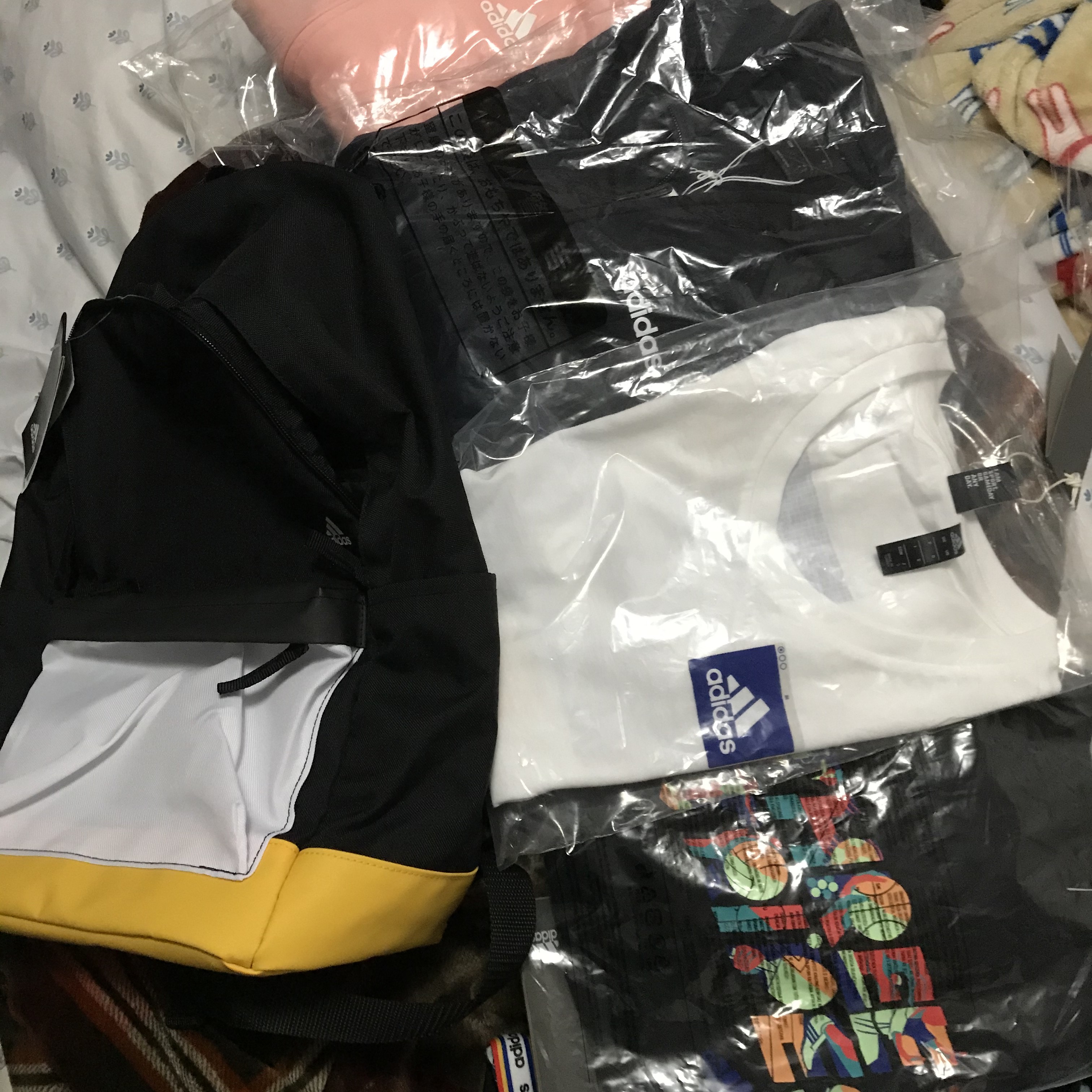 內容物有兩套運動服(深藍色跟粉灰)、兩件短T跟一個黑色後背包,覺得很福馬上剪