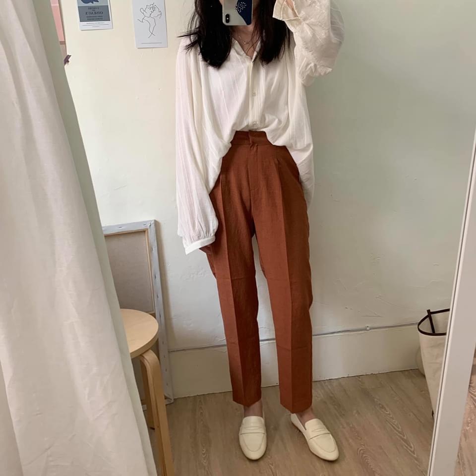 [二手/全國] lalau 正韓 (降)麻料老爺褲 磚橘