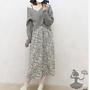 針織上衣+藝術斑點細肩帶洋裝2set 綠色