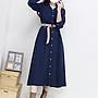REDYAZEL經典翻領口袋連身洋裝附腰帶(長袖款) 淺藍色 M (降價)