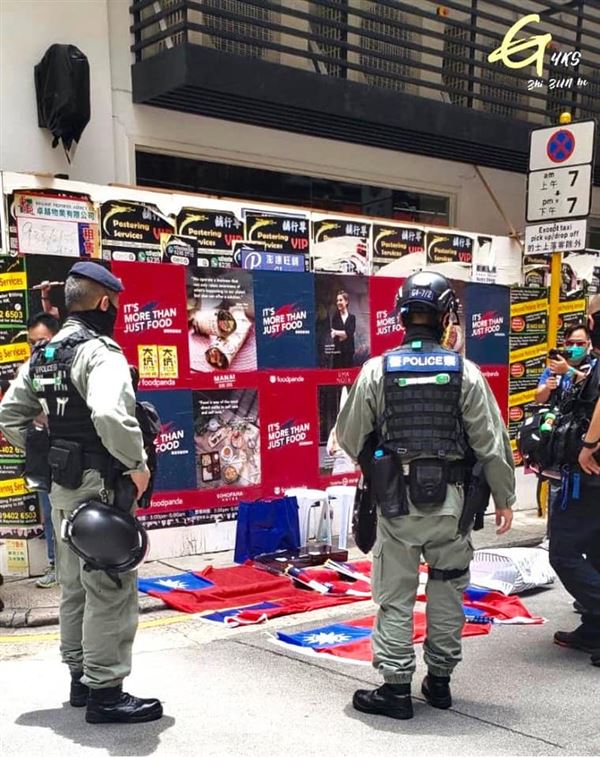 國安法上路 港警首度祭出「紫旗」