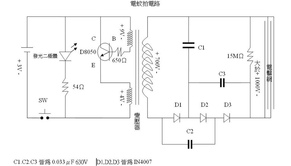 一開始打算使用電蚊拍的電路下去做