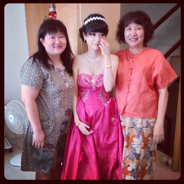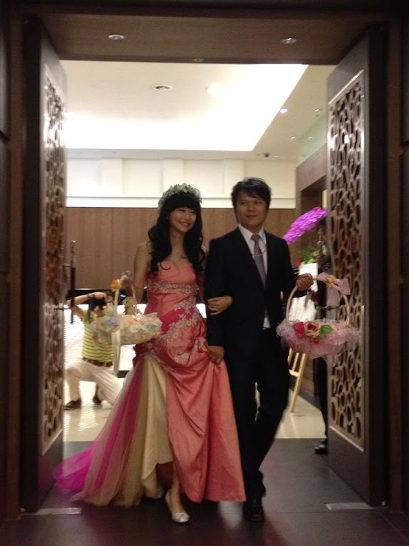 第三套:桃紅色緞面禮服,我是儀式的時候穿,裡面可搭配大蓬裙,穿起來很喜氣又不會太老氣(後來改衣服時有再加上透明肩帶)
