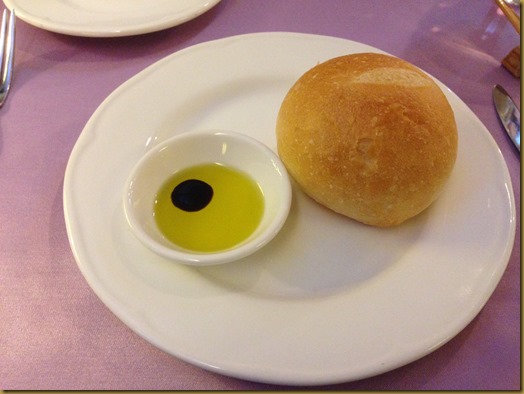 小圓法國麵包搭配橄欖油、紅酒醋。