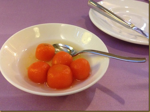 開胃小菜之蜜漬胡蘿蔔球。