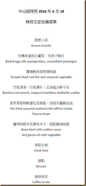 餐後飲料平時是咖啡和花果茶擇一,