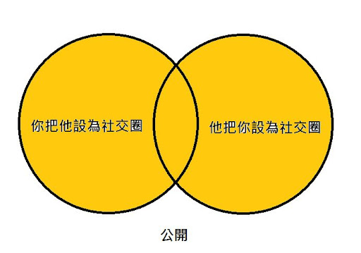 公開:只要有把你設為社交圈的人都看的到(即使你沒加他)