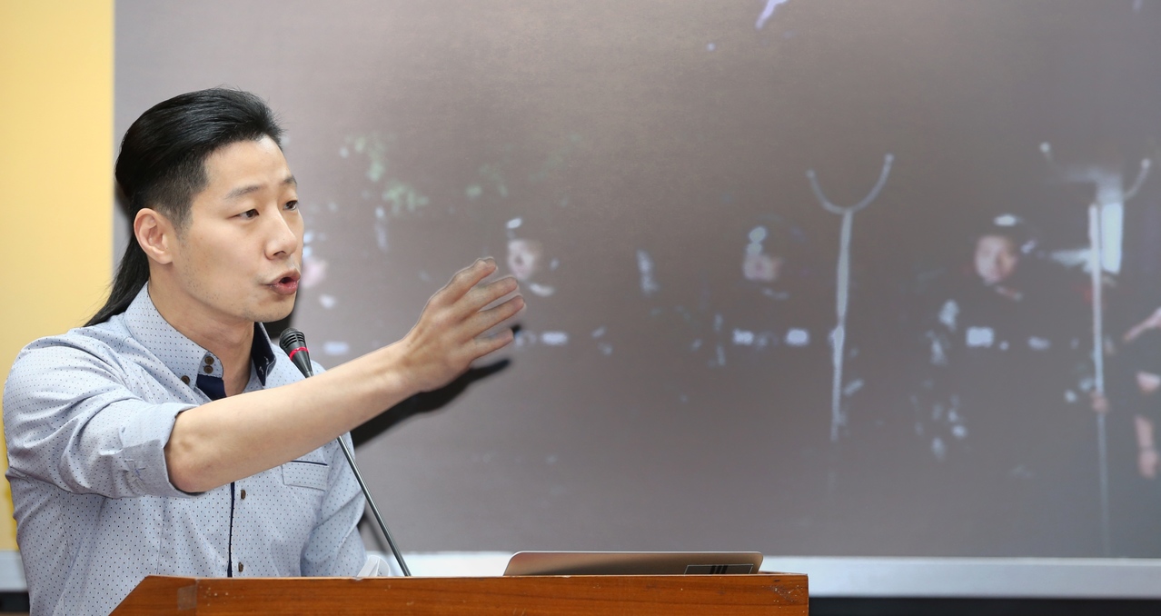 : : 指出台灣藝人在中國大陸表演時,遭到大陸鎮暴警察監控。記者陳易辰/攝影