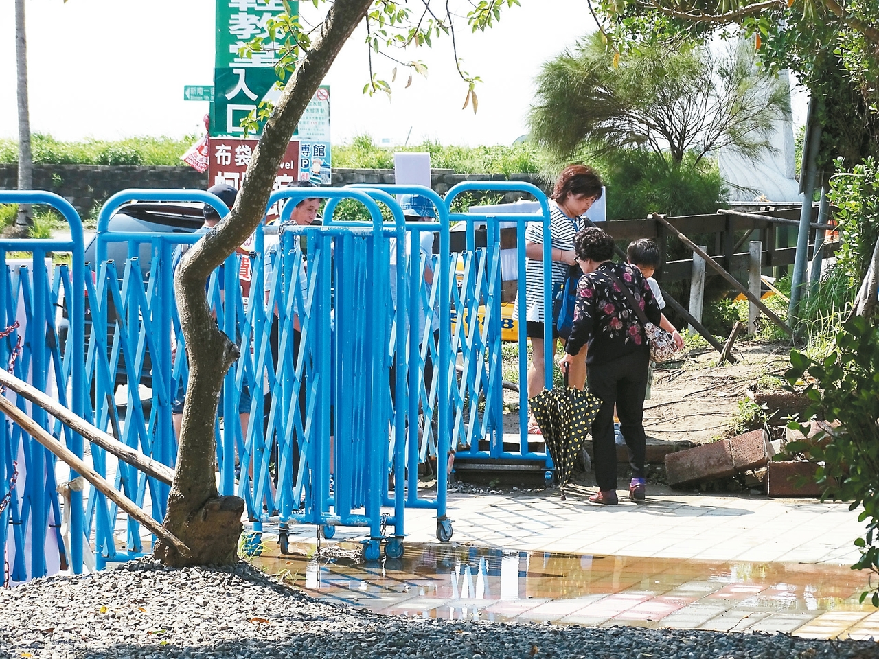 許多遊客為求方便,竟然將布袋高跟鞋教堂東南側施工進出口木板扳開「自由通行」。