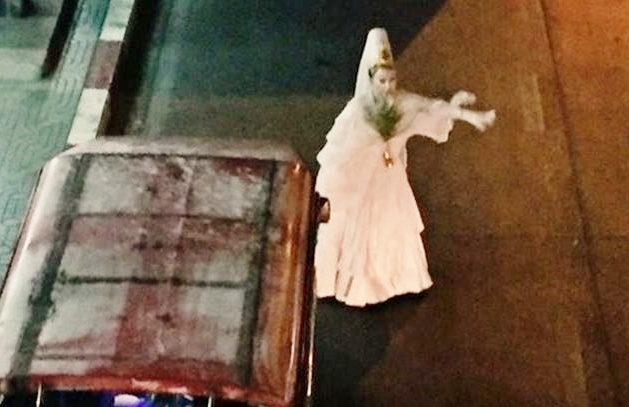 圖擷取自:Sanook.com網友AquariusNick說,當時天色昏暗路上行人也比較少,他乍一看見身穿一襲白色怪異長裙的女子時,還以為撞見女鬼了,嚇了一跳。定睛一看才知道是有人裝扮成神仙觀音娘娘的樣子,網AquariusNick便立即拿手機出來拍照。一些路人剛開始也被嚇一跳,不過看清楚後紛紛拿手機出來拍照。隨後,「觀音」便走到路邊招手打車,路上很多空車都不敢停下來,均踩油門加速離開現場,過了一段時間,才有一名膽大的出租車司機停車,讓「觀音」上車。據悉,打扮成觀音的女子之前曾因裝扮成其他的角色,並行走在大街上而走紅,各大新聞媒體均報導過她的消息。沒想到這次她會扮成觀音出現在大家面前,不過白天的時候還好,到了晚上遇見的話很容易被誤會以為見鬼了。4.完整新聞連結 (或短網址):http://udn.com/news/story/5/16618575.備註:孝女白瓊※ 一個人一天只能張貼一則新聞,被刪或自刪也算額度內,超貼者水桶,請注意--※ 發信站: 批踢踢實業坊(ptt.cc), 來自: 123.204.113.113※ 文章網址: https://www.ptt.cc/bbs/Gossiping/M.1461918920.A.697.html※ 編輯: RedCarRet (123.204.113.113), 04/29/2016 16:36:16