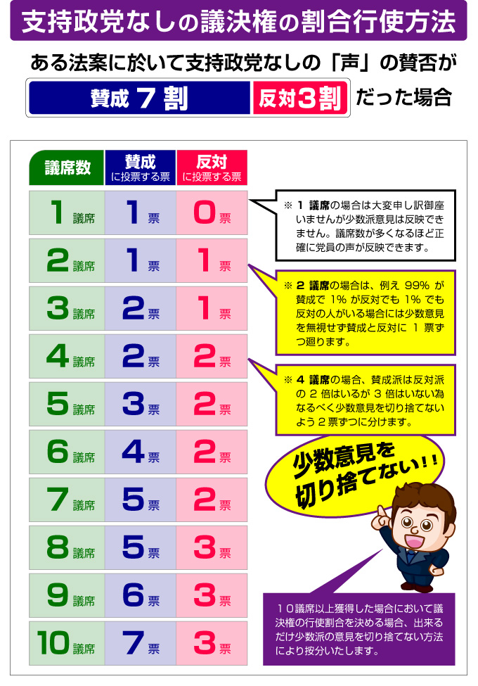 假設民調對該法案為贊成者70%,反對者30%,持有席次會依照民調投下贊成及反對票