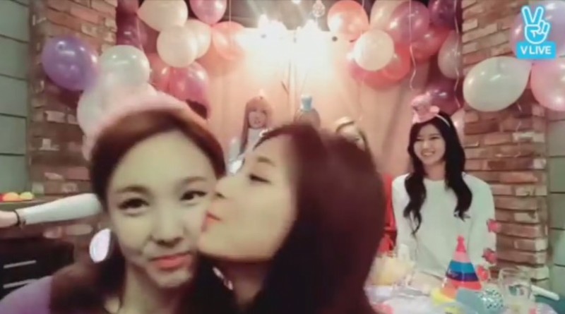 昨日9位團員一起開直播,周子瑜又被拱要親親,這回她真的躲無可躲,只好快速的在娜璉臉上留下深深的口紅印,兩人的好感情讓粉絲看的樂開懷。