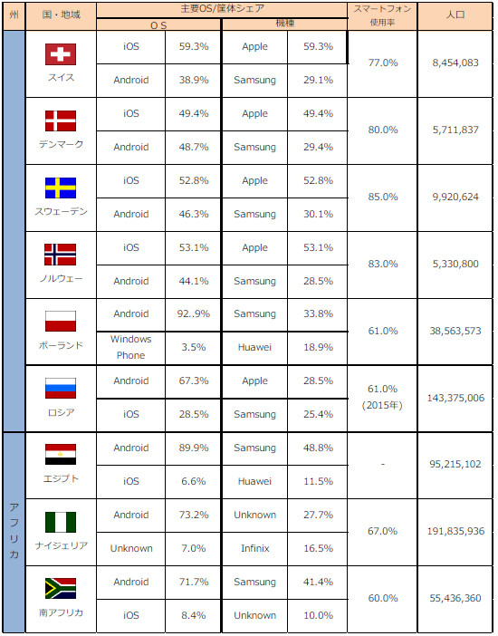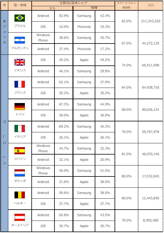 各國使用智慧型手機統計