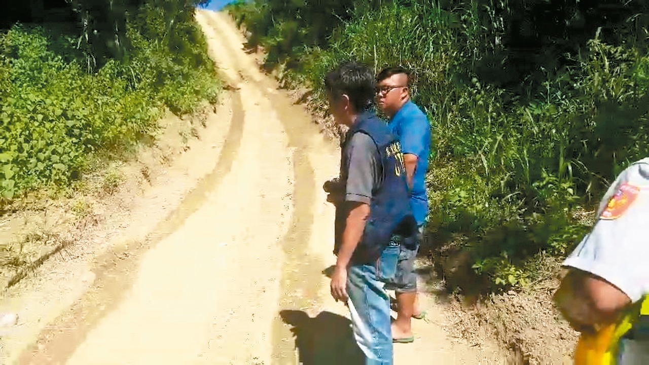 吉普車駕駛張姓男子(右)昨天帶著警方到翻車地點說明意外發生經過。