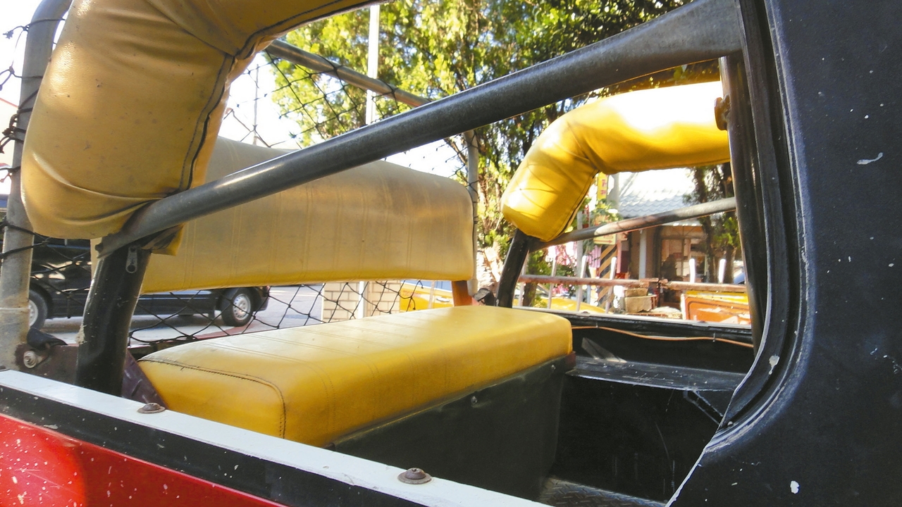 看起來只有前座有安全帶,後座就長板凳一張