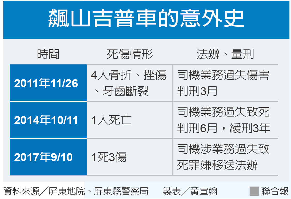 2017年9月10日 |1死3傷 |司機涉業務過失致死罪嫌移送法辦