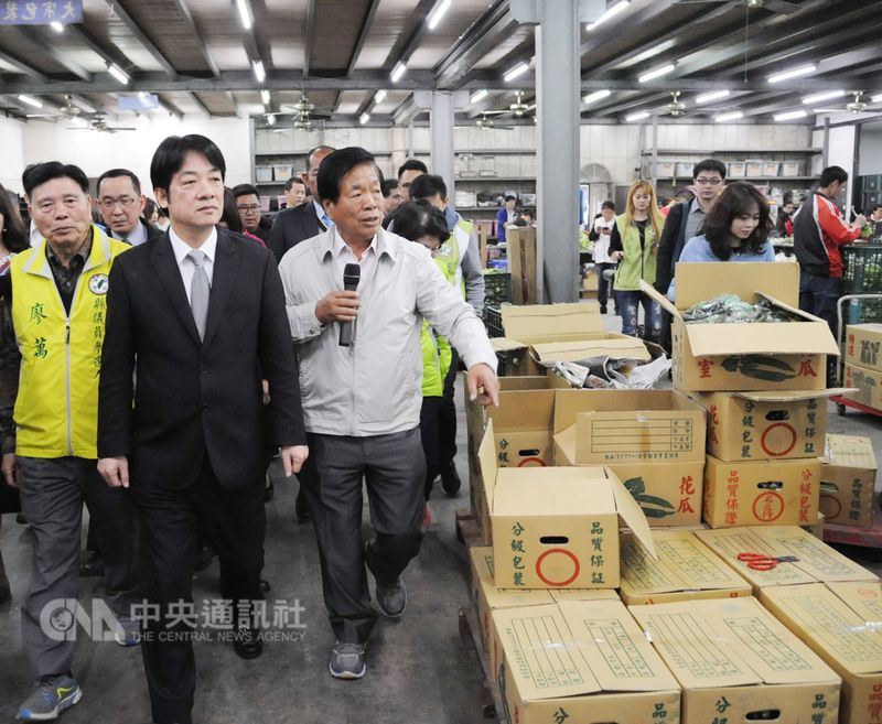 行政院長賴清德(前左2)10日參訪雲林西螺漢光果菜生產合作社,對於北農事件造成農