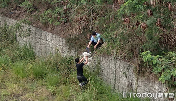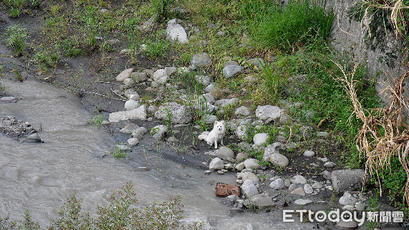 說,該犬見人不斷狂吠呼救,並在河道中跑竄。因現場沒有樓梯可下到河道,台灣動物緊