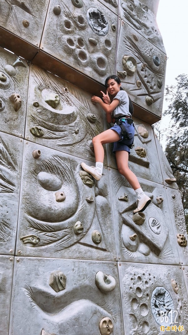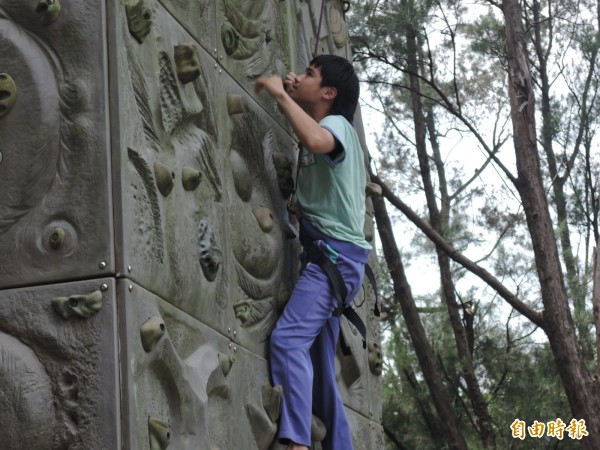 中加入攀岩,攀岩塔總共有4面、高達30公尺,每一面的難度都不同,學生必須踏穩每一