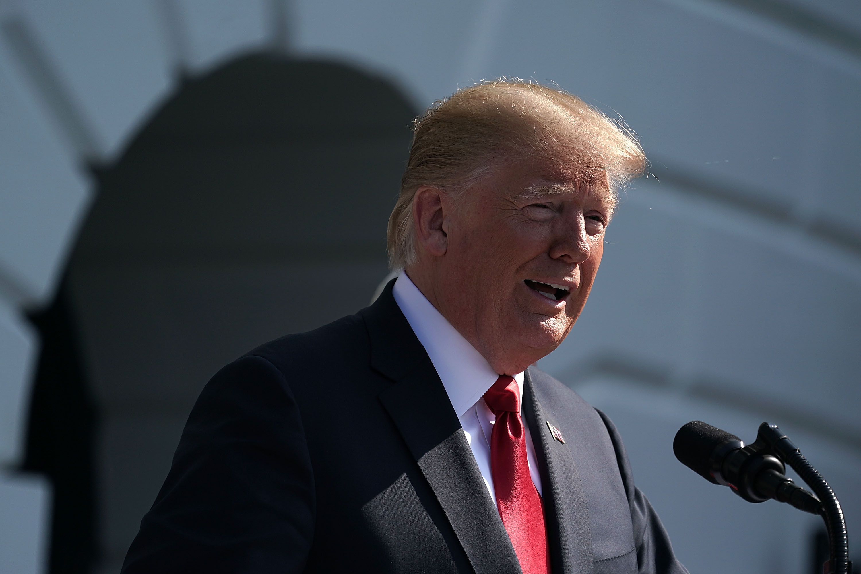 月27日,川普在白宮南草坪就經濟成長發表演說。(Alex Wong/Getty Images)