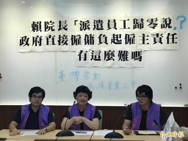 勞團今召開記者會批評,行政院將派遣工歸零的作法,實際上可能迫使派遣工成為承攬工