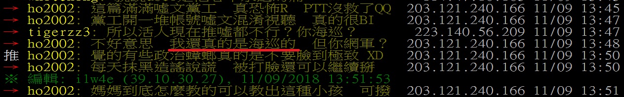 : → ho2002: 網軍不用在帶風向了啦 大家都知道誰是 203.121.240.166 11/09 14:34