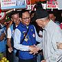 國民黨台北市長候選人丁守中今掃街拜票時,承諾將恢復重陽敬老金。